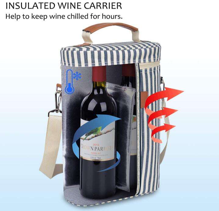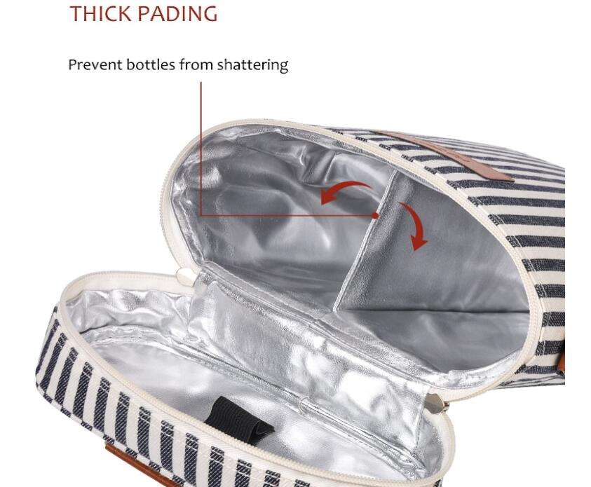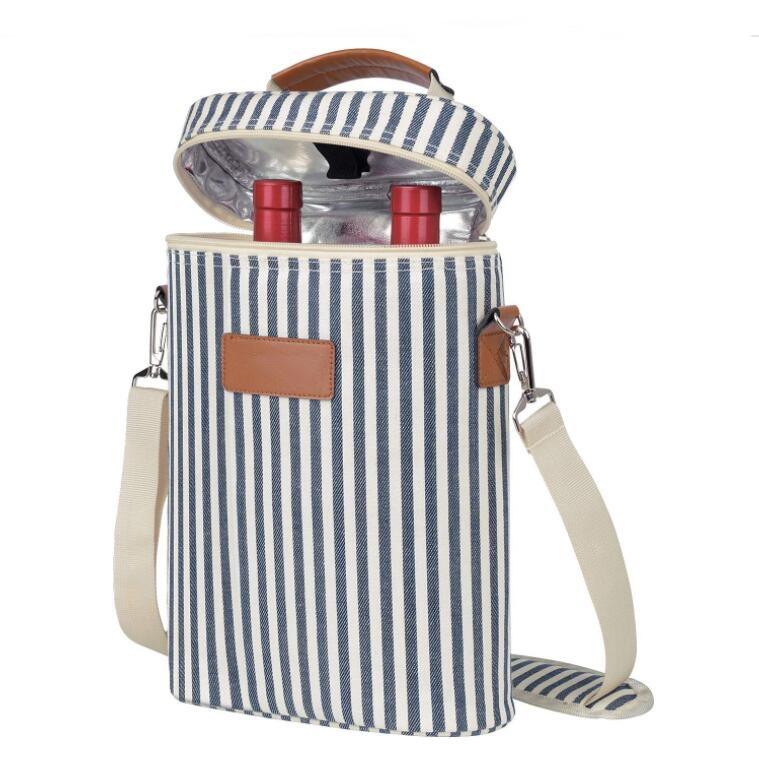 Zuhause / Produkte / Kühltasche & Lunchpaket / Weinbeutel / 2 Flaschen gepolsterte, auslaufsichere, gestreifte, thermische Weinflaschentragetaschen, Männer, Reisen, Schwimmen, Strand, Wein, isolierte Tasche