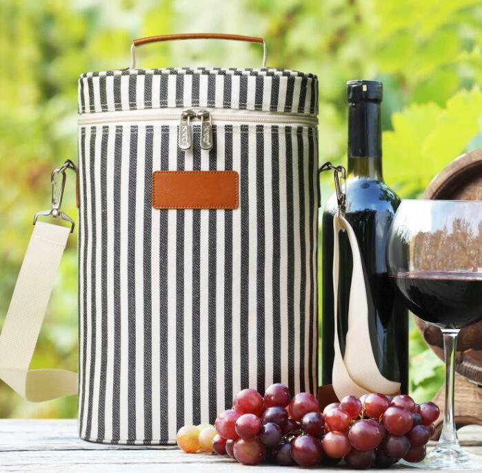 2 Flaschen gepolsterte, auslaufsichere, gestreifte, thermische Weinflaschentragetaschen, Männer, Reisen, Schwimmen, Strand, Wein, isolierte Tasche