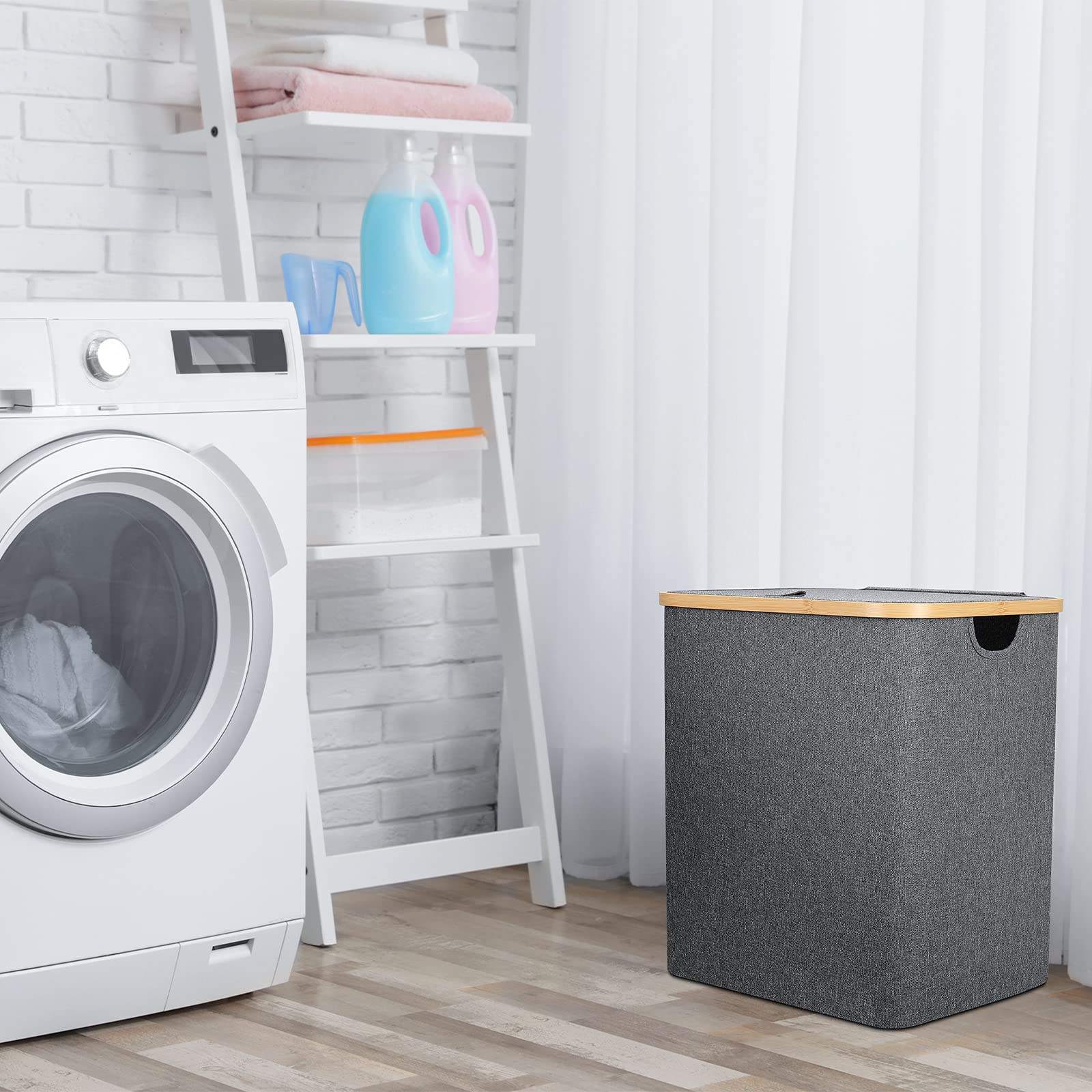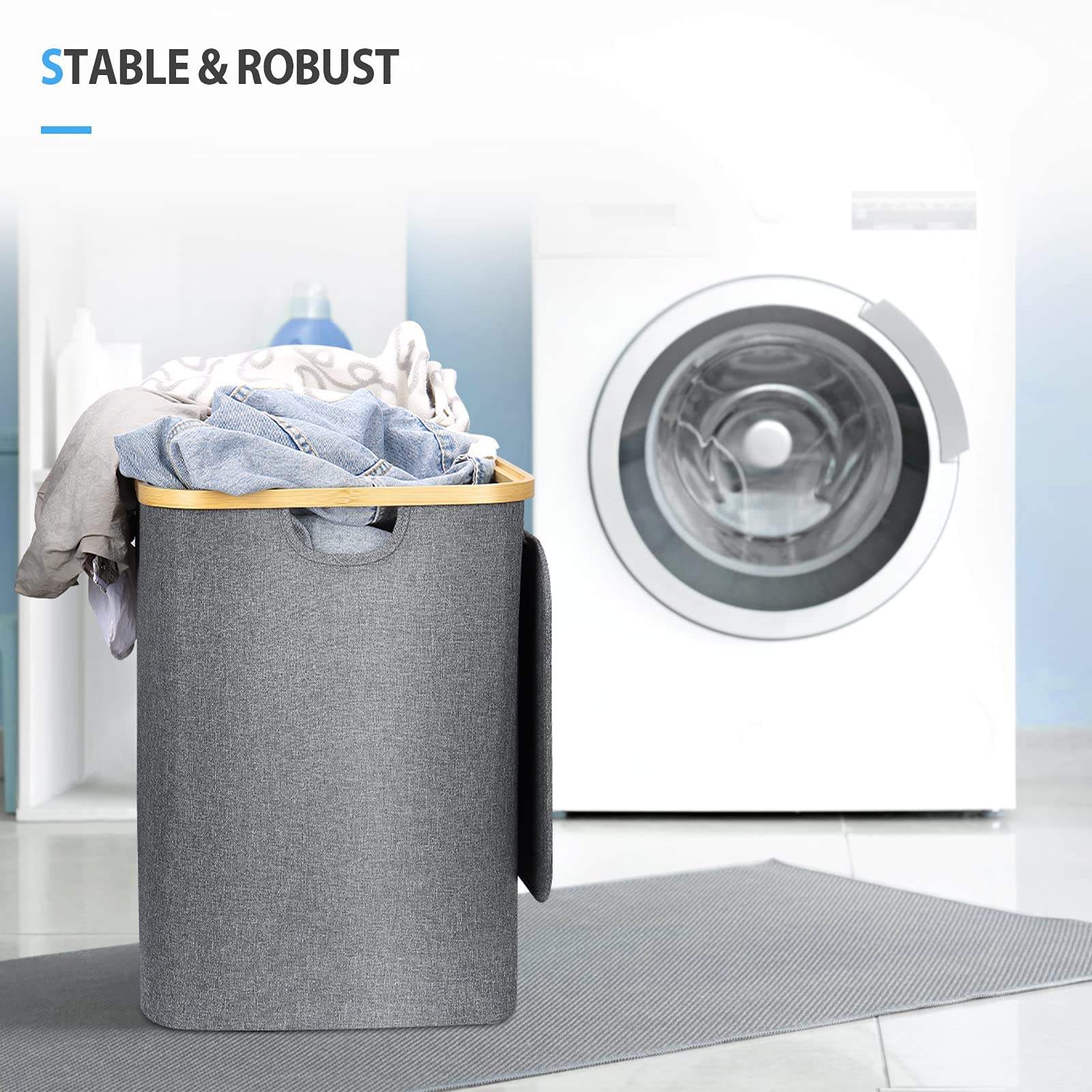 60L zusammenklappbarer Wäschekorb aus Bambus mit waschbarem Wäschesack, wasserdichter Wäschesortierer für Schlafzimmer, Spielzeug und Kleidung Orga