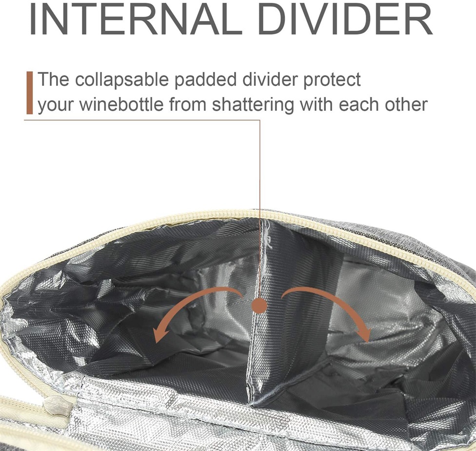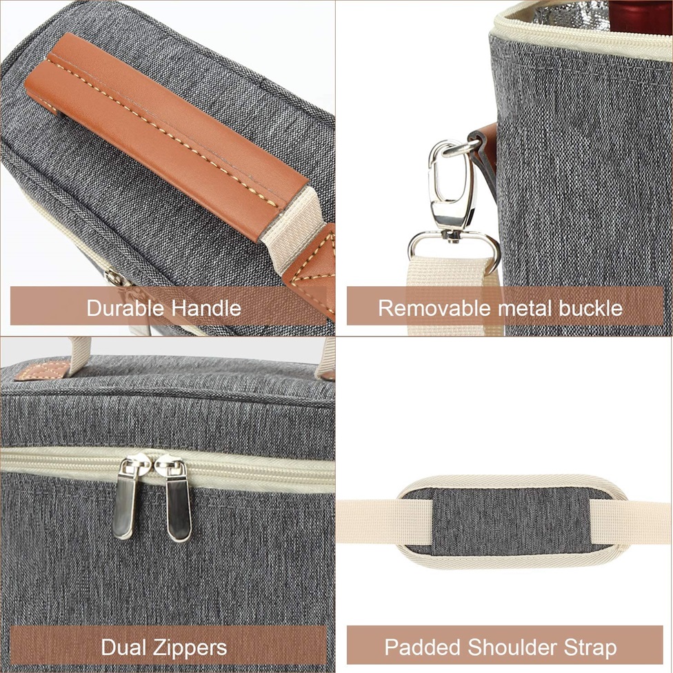 | Name | Auslaufsichere, wärmeisolierte Weinkühltasche für 2 Flaschen, Weintragetasche mit verstellbarem Schultergurt | ||||||