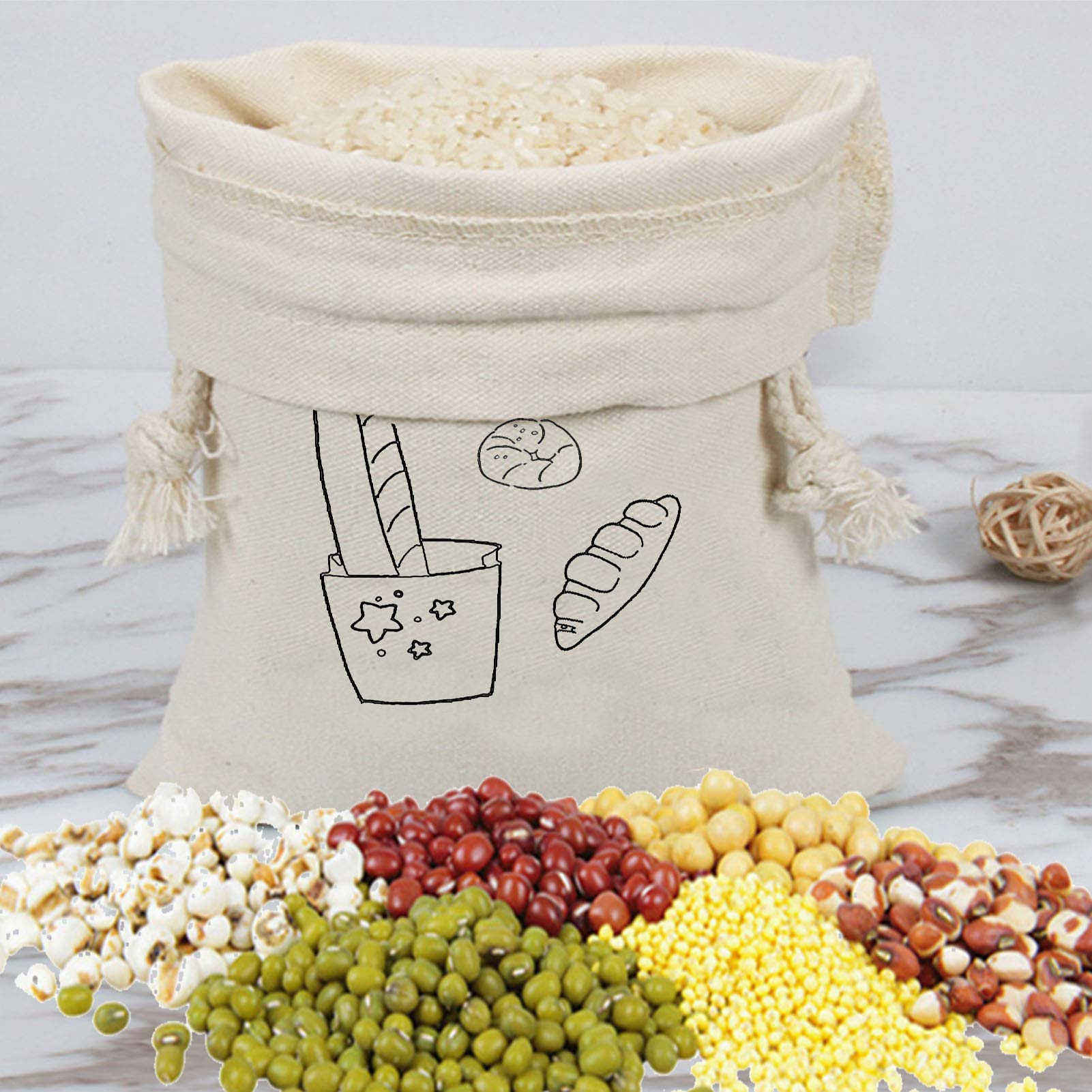 Zuhause / Produkte / Einkaufstasche / ECO-Einkaufstasche / Brotbeutel Hausgemachte wiederverwendbare Aufbewahrungsbehälter für Lebensmittel Handwerkliche Brotbeutel Reiskorn Naturstoffbeutel