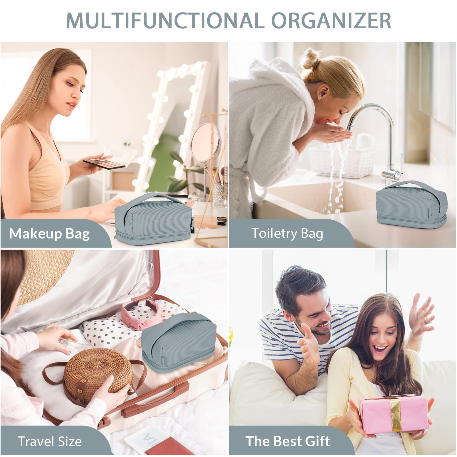 Doppellagige Reisebürstenfach-Make-up-Tasche für Frauen Make-up für Badezimmer Tragbare blaue Kosmetiktasche mit großer Kapazität