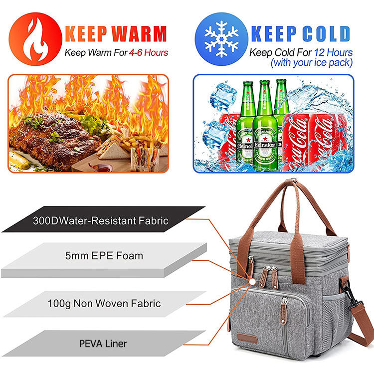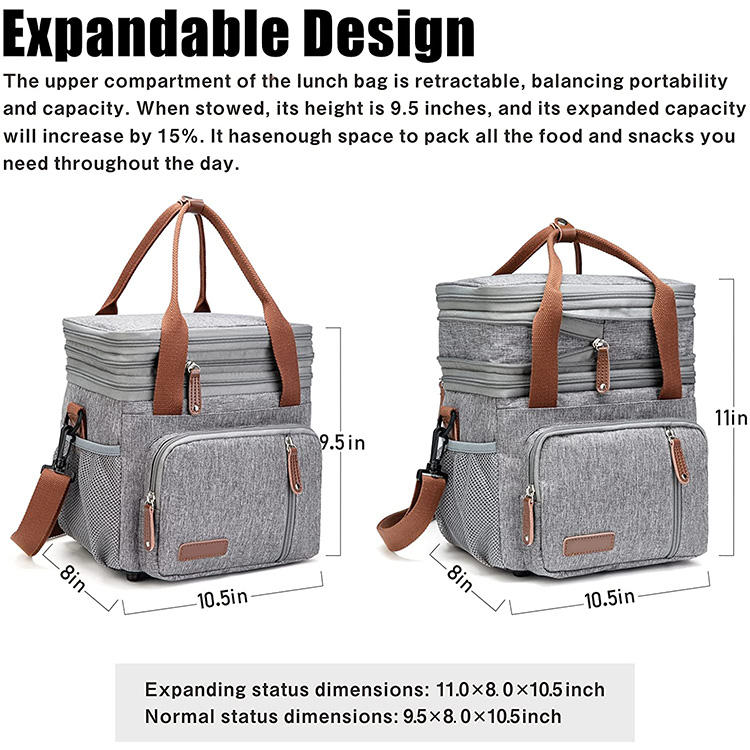| Extra große, erweiterbare, isolierte Lunch-Kühltasche mit Schultergurt | ||