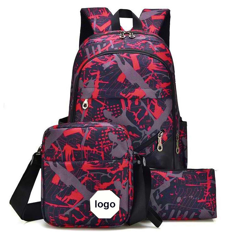 Zuhause / Produkte / Rucksack / Reiserucksack / Fashion Camo Schulrucksack-Set mit Umhängetasche und Tasche für Teenager-Mädchen und Jungen, leichte Oxford-College-Schulbüchertasche