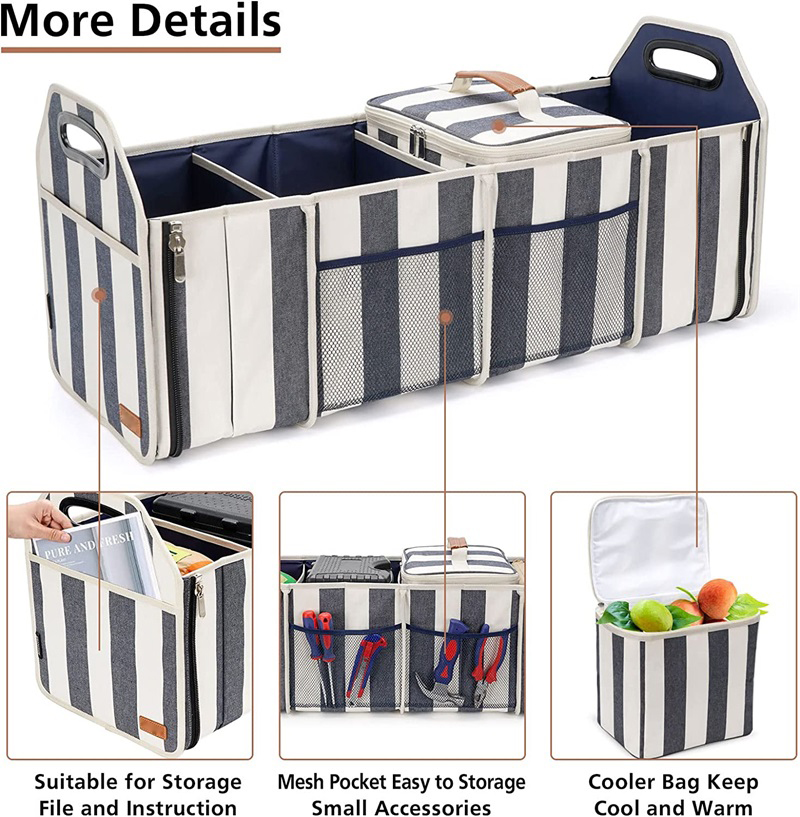 | Produktname | Flexibler Kofferraum-Organizer Einzigartige Kofferraumaufbewahrung Faltbarer Trailblazer-Kofferraum-Organizer Lebensmittel mit isolierter auslaufsicherer Kühlbox | ||||||
