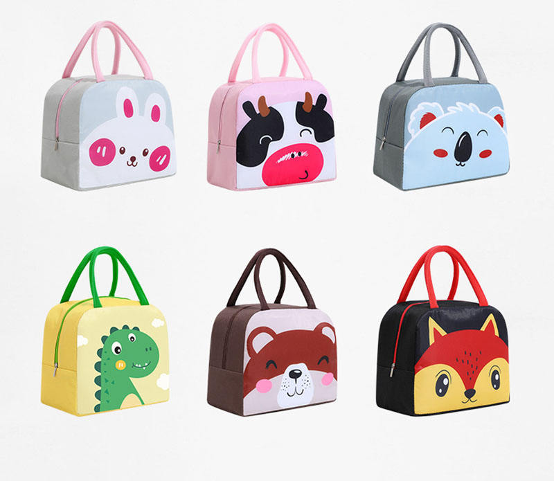 | Produktname | Geschnittener Tierdruck Isolierte Kühltasche für Schulessen für Kinder Thermische Kühltasche für Lebensmittel mit langem Griff | ||||||
