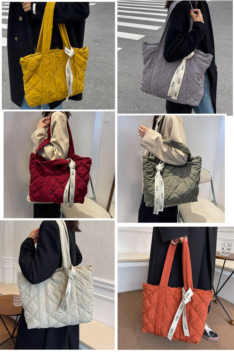 | Produktname | Gesteppte Puffer Tragetaschen Damen Maßgeschneiderte Tragetasche Große Kapazität Nylon Orange Puffer Tasche mit Band Chrmars Damenhandtasche | |||