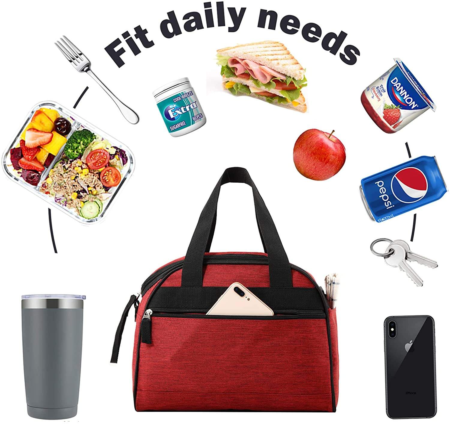 | Große, wasserdichte, isolierte Lunch-Tasche mit Reißverschluss und Schultergurt | ||