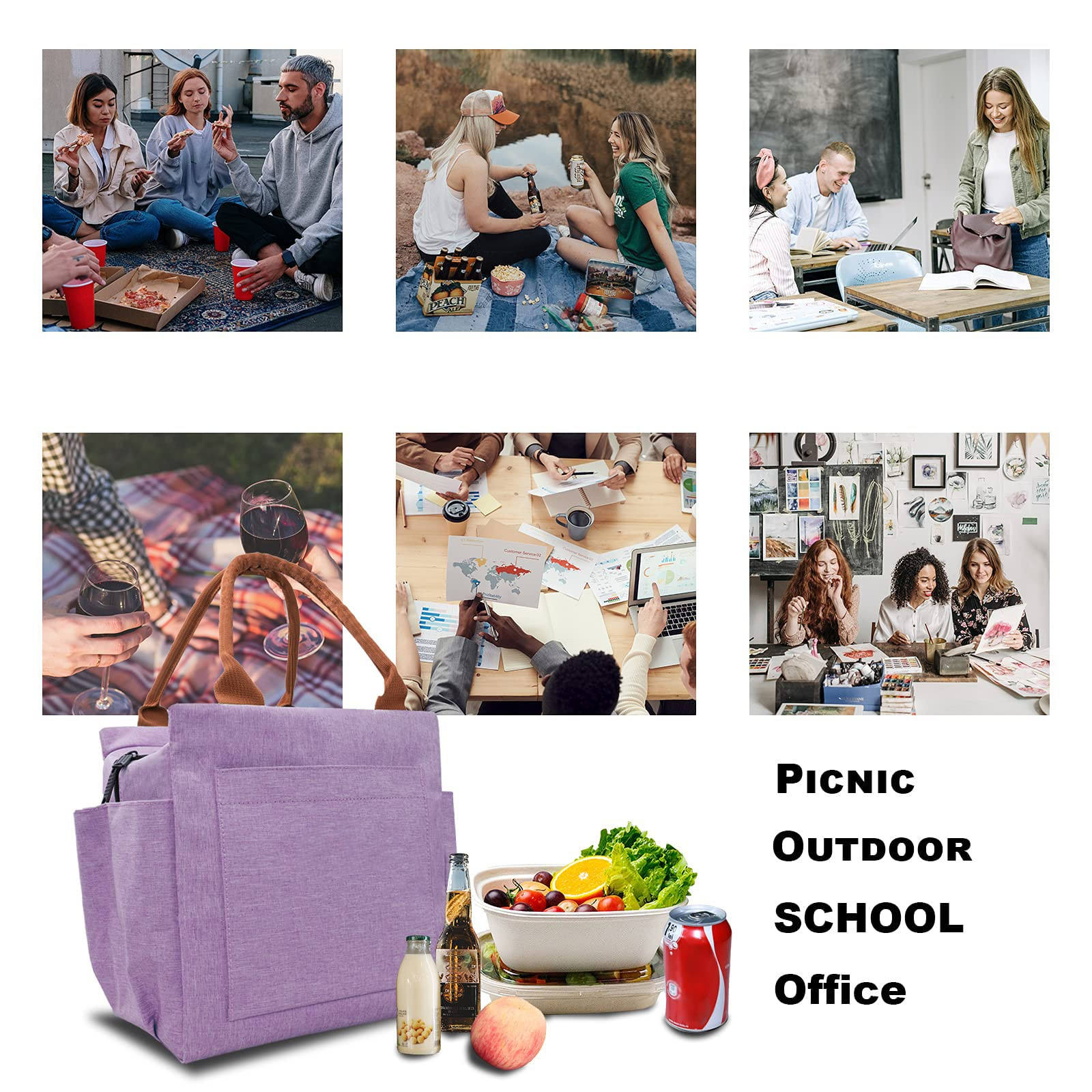 Große wiederverwendbare isolierte Thermo-Lunchbox für Damen, auslaufsichere Kühltasche für das Büro