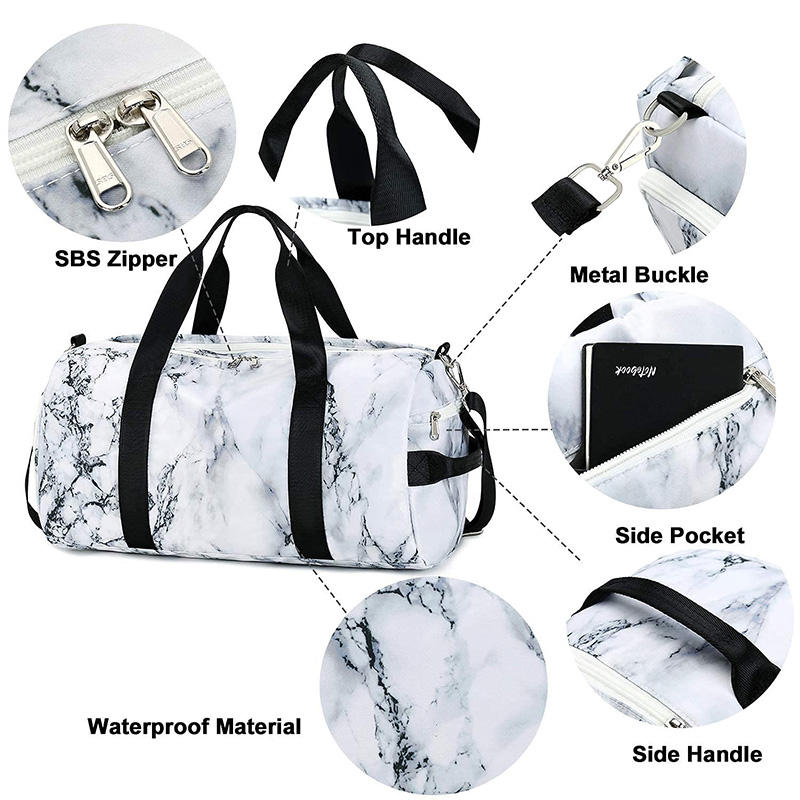 | Großhandel Custom Marmor Druck Polyester Fitness Gym Sporttasche Frauen Duffle Bag | |