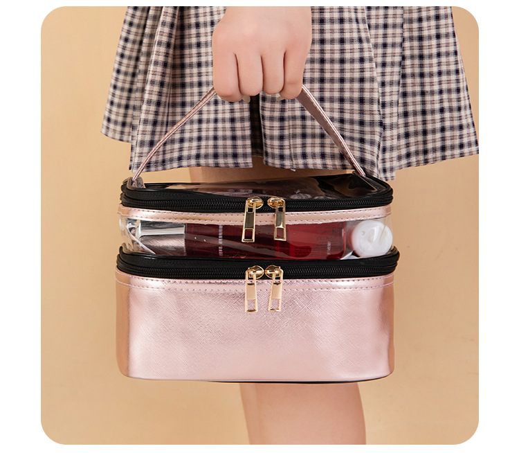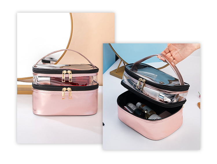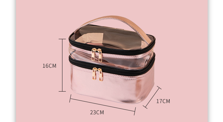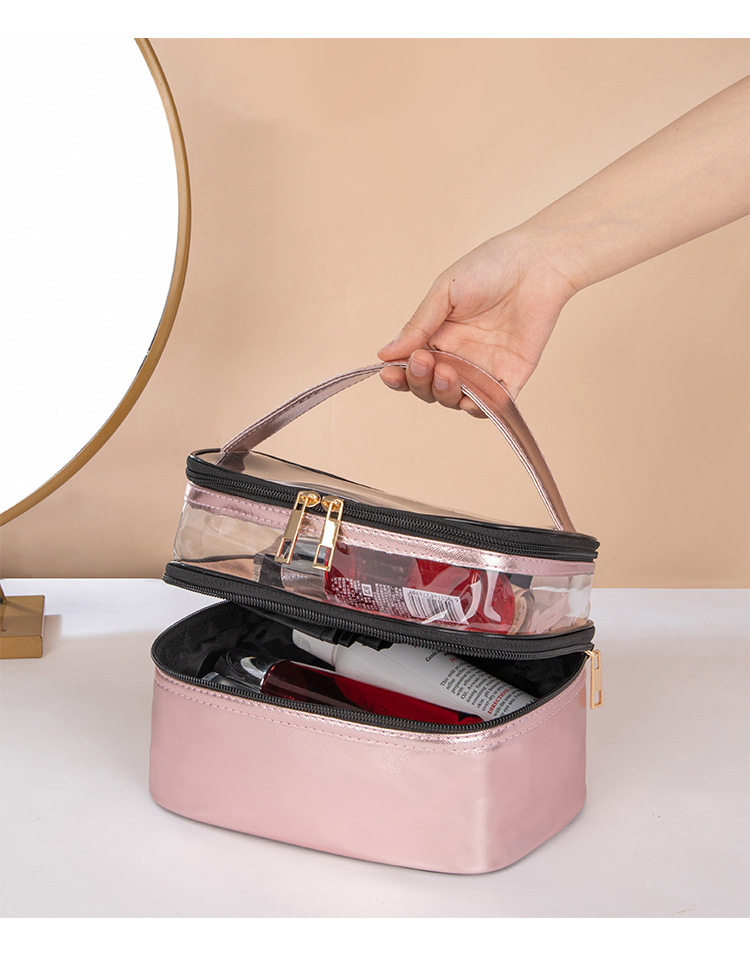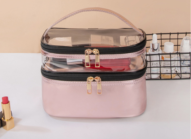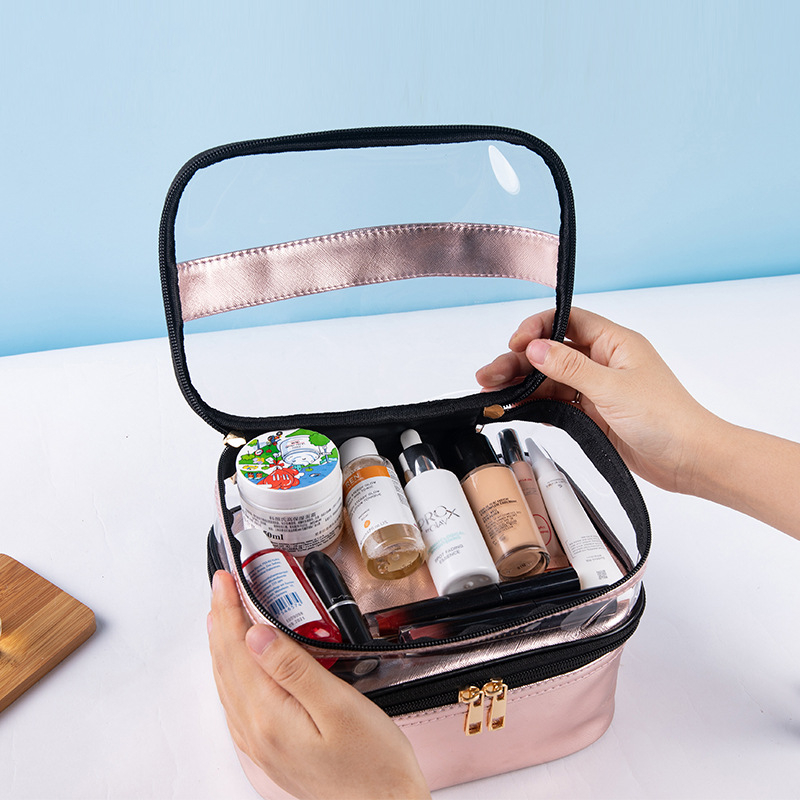 | Produktname | Großhandelskundenspezifisches Logo druckte Waschbeutel-Organisator-PVC-transparenten Beutel-Toilettenartikel-Doppelschicht-Reise-Verfassungs-Kosmetik-Beutel | ||||||