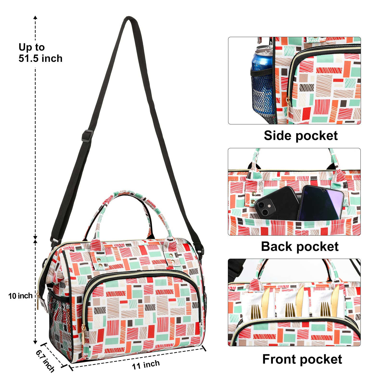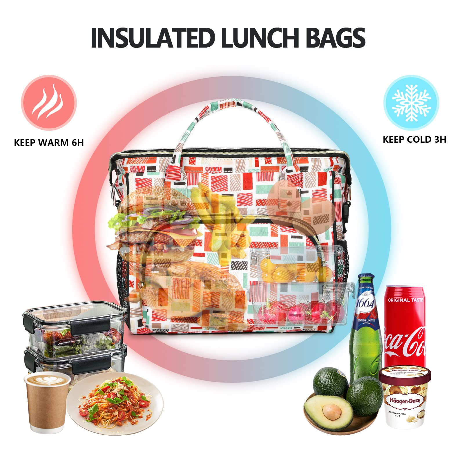 Zuhause / Produkte / Kühltasche & Lunchpaket / Lunchpaket / Isolierte, wiederverwendbare Damen-Kühltasche für Mittagessen, auslaufsicher, mit Schultergurt für Arbeit, Schule, Büro, Picknick, Strand