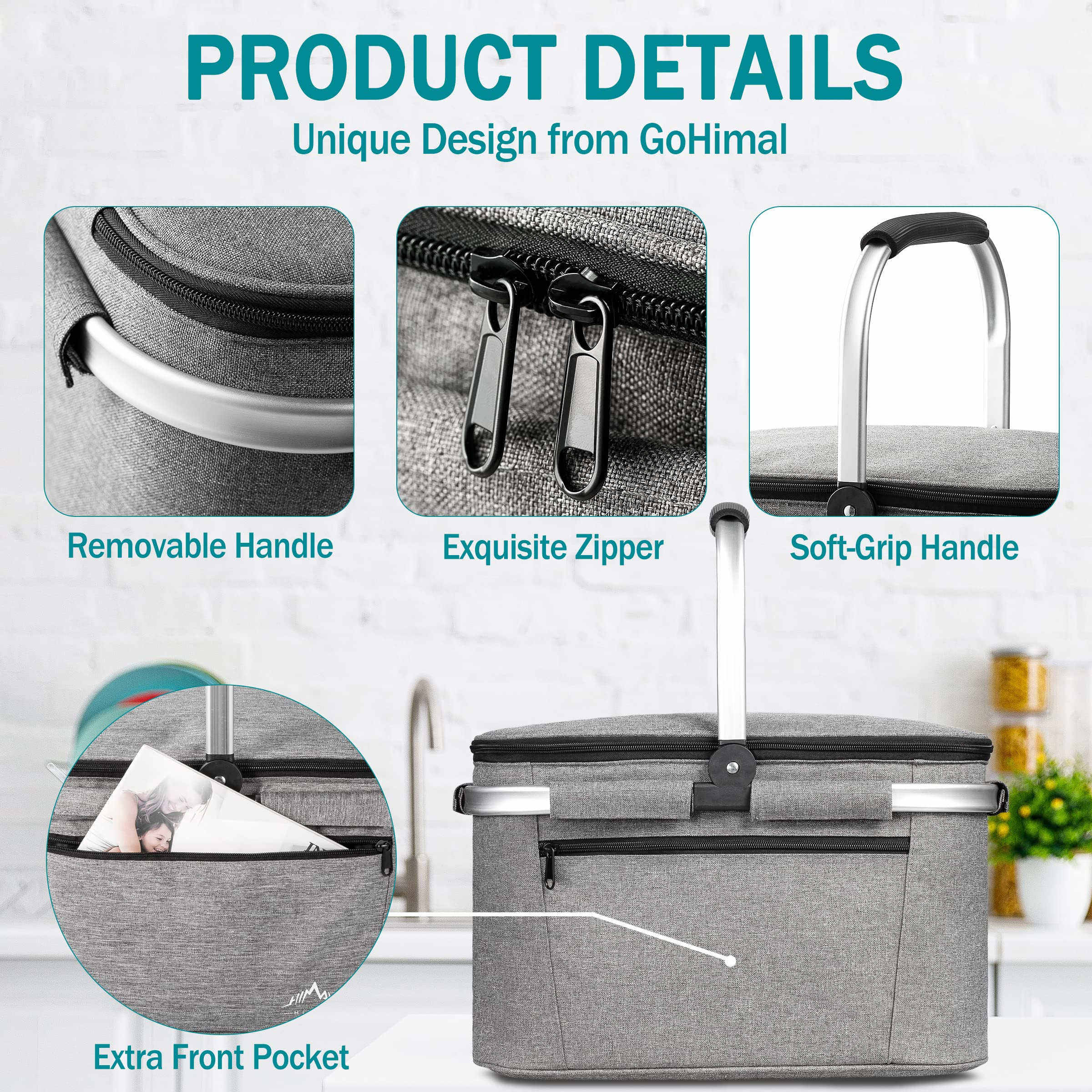 Zuhause / Produkte / Kühltasche & Lunchpaket / Kühltasche / Isolierter Picknickkorb 32 l, tragbar, zusammenklappbar, Wein, Bierdose, Lebensmitteltaschen, auslaufsicherer Kühlkorb zum Einkaufen