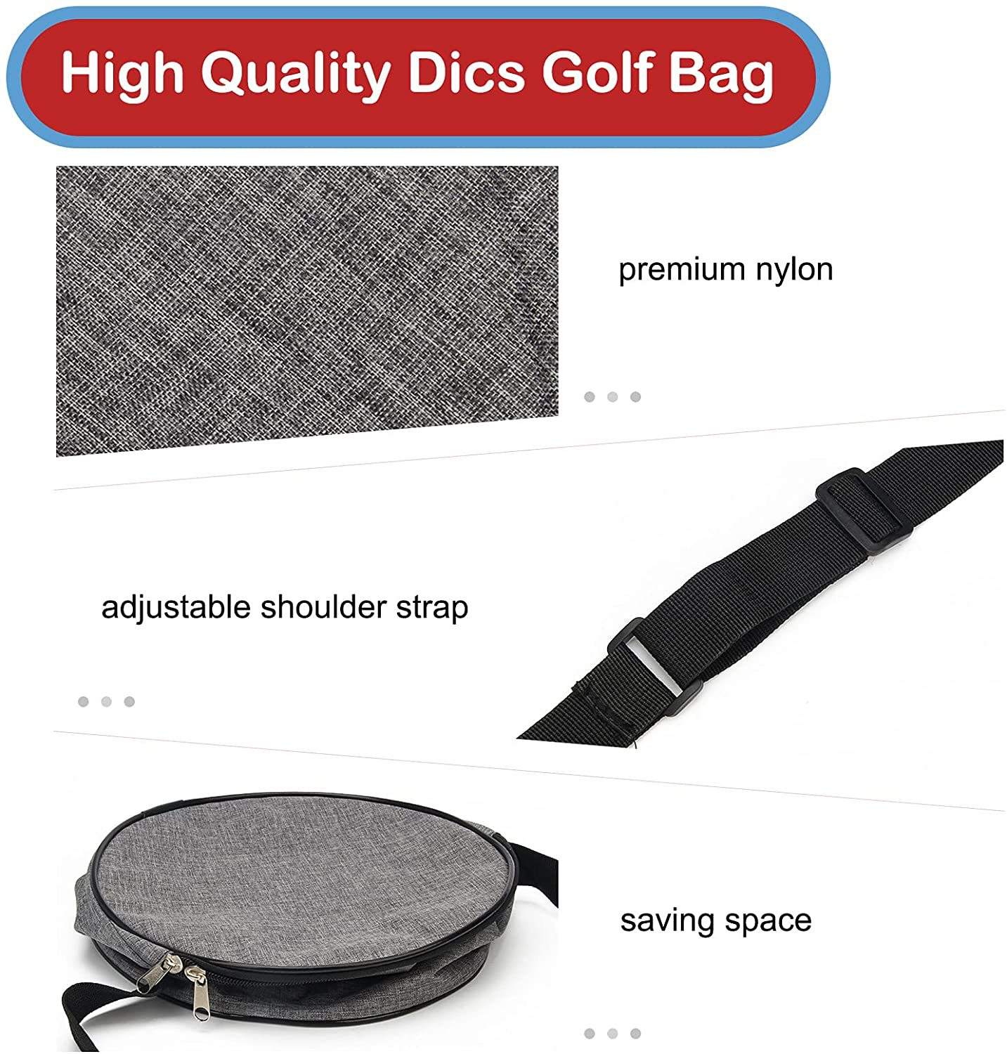 | Name | Maßgeschneiderte, strapazierfähige Frisbee-Disc-Golftasche mit verstellbarem Riemen. Leichte Disc-Golftasche für Anfänger | |||