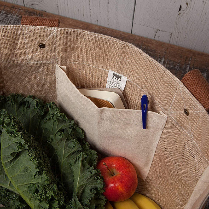 |  Name        |  Mehrzweck-Einkaufstasche aus natürlicher Jute, wiederverwendbar, mit langen Ledergriffen für Damen          | |||