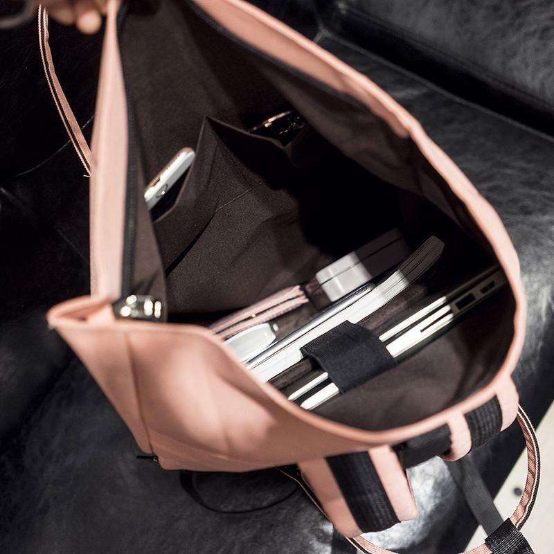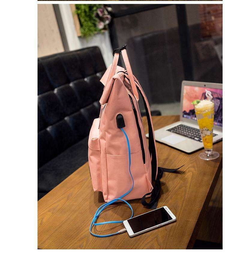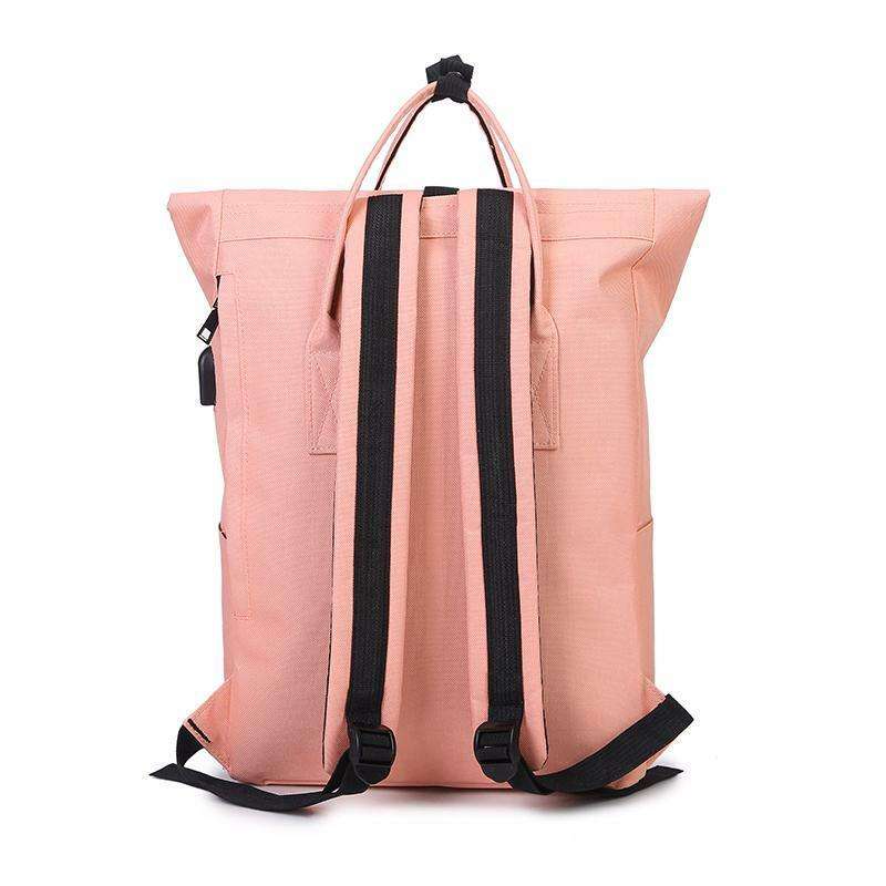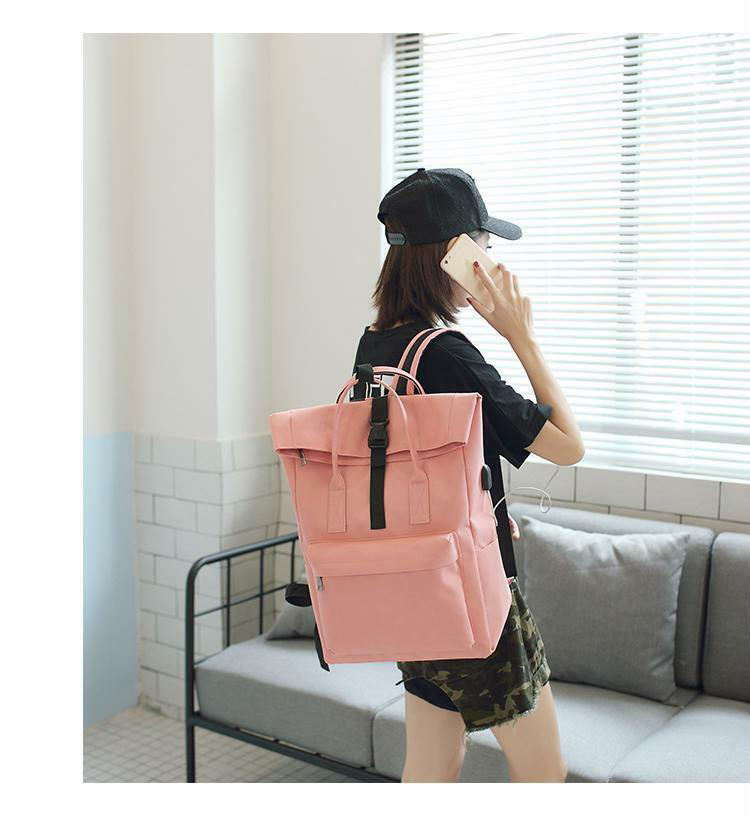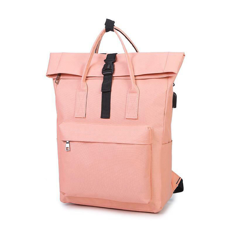 Pinker Rolltop-Rucksack aus recyceltem Rpet, modischer Roll-Up-Reiserucksack, Tagesrucksack mit USB-Aufladung