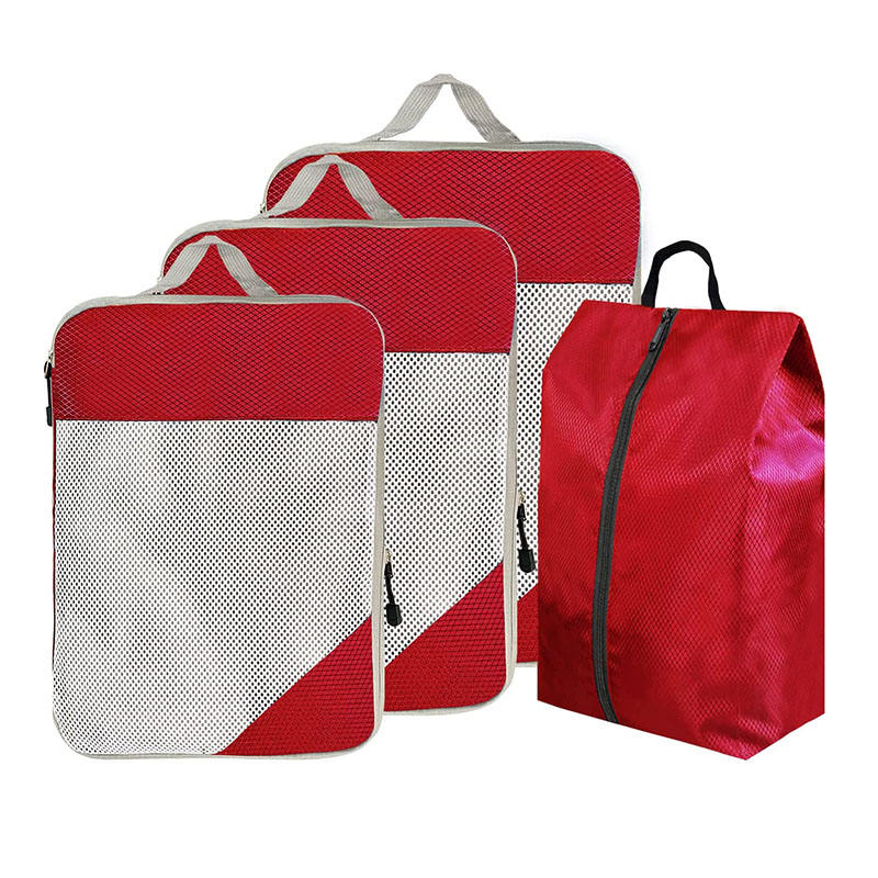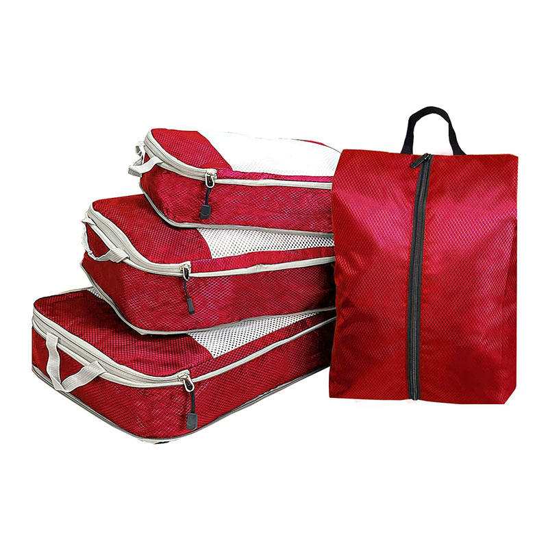 Rote wasserdichte Kompression 4pcs Reisezubehör Organizer Gepäckwürfelbeutel Verpackungswürfel für Kleidung