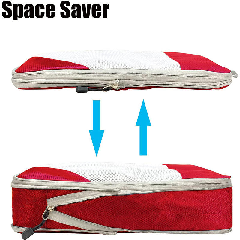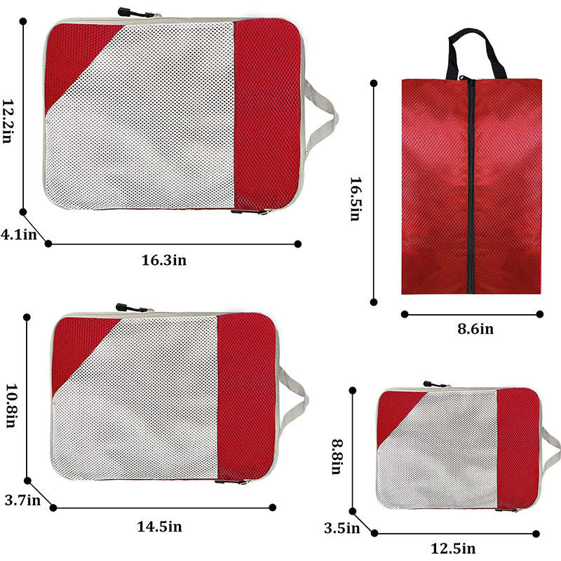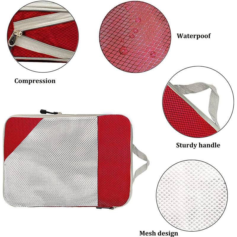 Zuhause / Produkte / Reisetasche / Packwürfel für die Reise / Rote wasserdichte Kompression 4pcs Reisezubehör Organizer Gepäckwürfelbeutel Verpackungswürfel für Kleidung