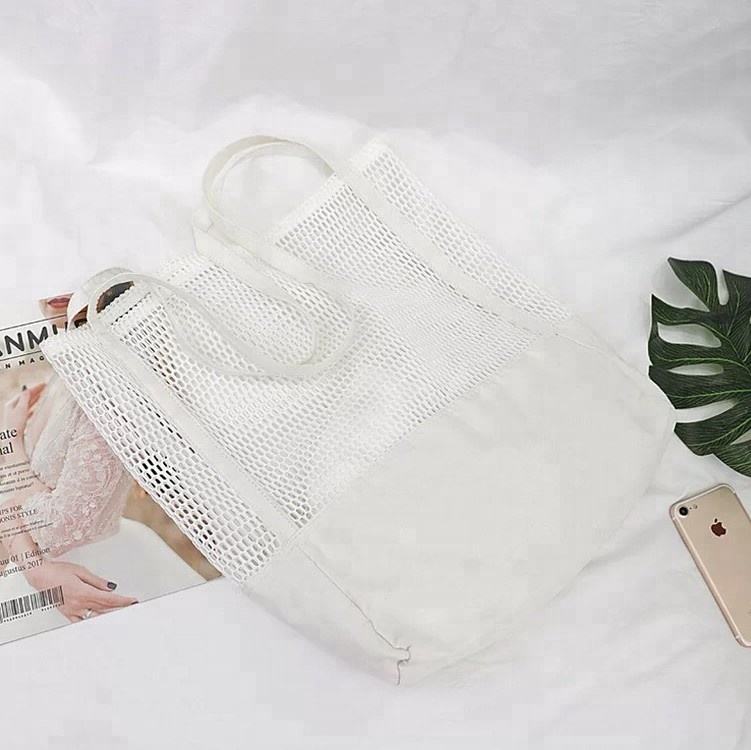 Strand wiederverwendbare billige Netz-Leinwand-Einkaufstasche Großhandel Shopping große Baumwolle tragen Mesh-Einkaufstasche