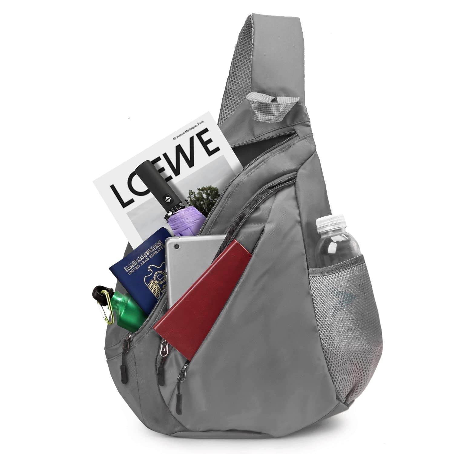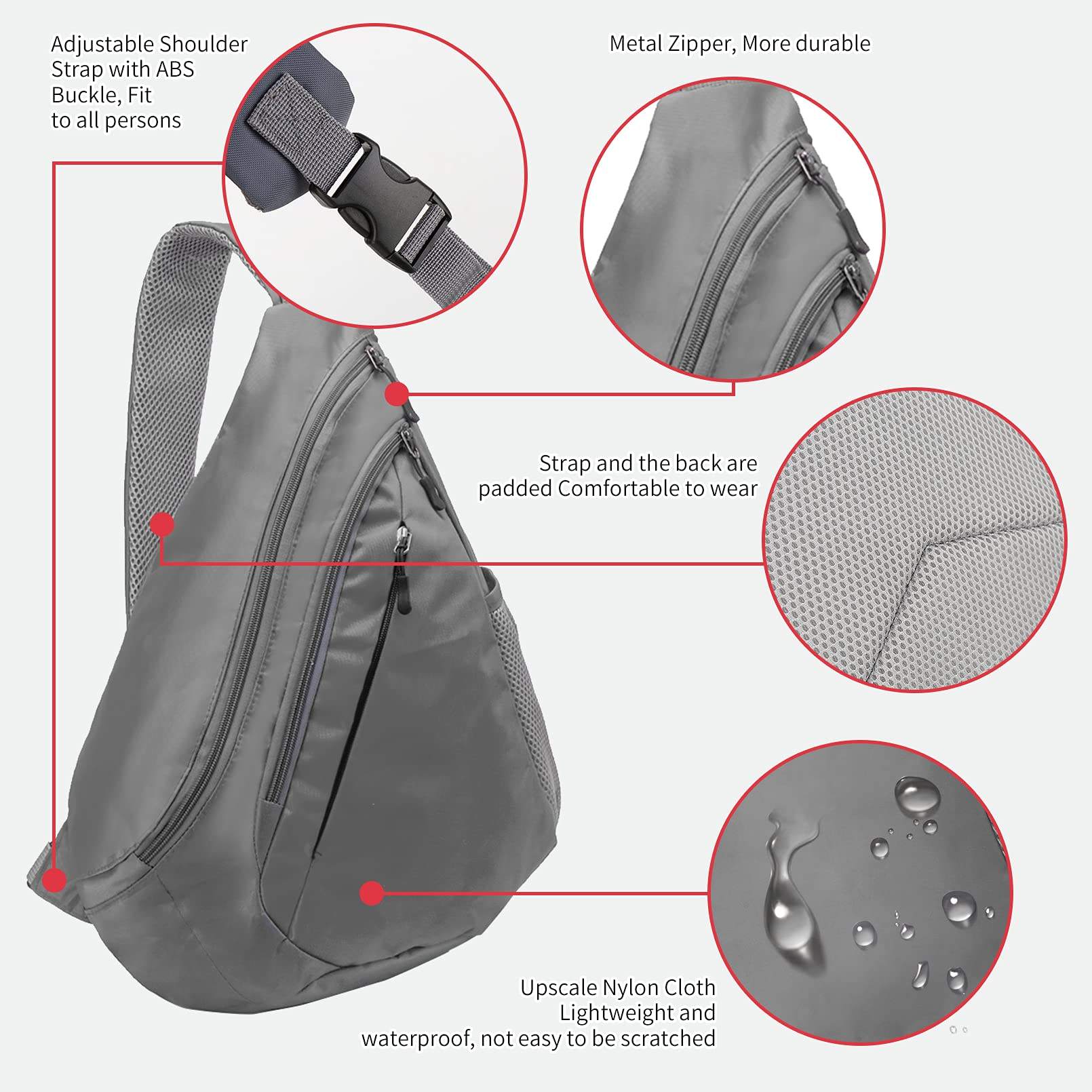 | Wasserdichte Custom Sling Bag Leichte Umhängetasche Travel Hike Rucksack für Damen Herren Kind grau | |