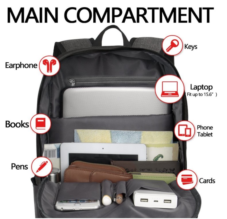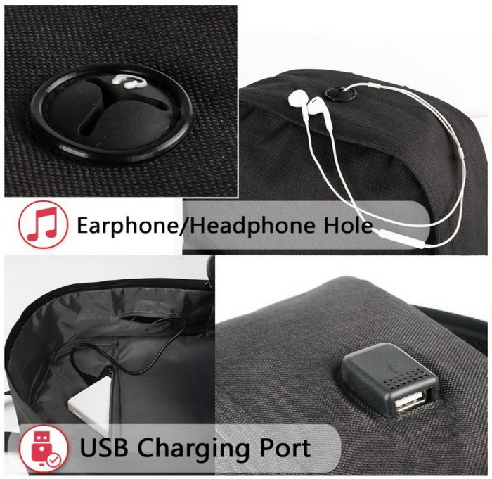 | Wasserdichte Smart Daypack Travel Business Laptop Rucksack Tasche mit USB-Lade- und Kopfhöreranschluss | ||