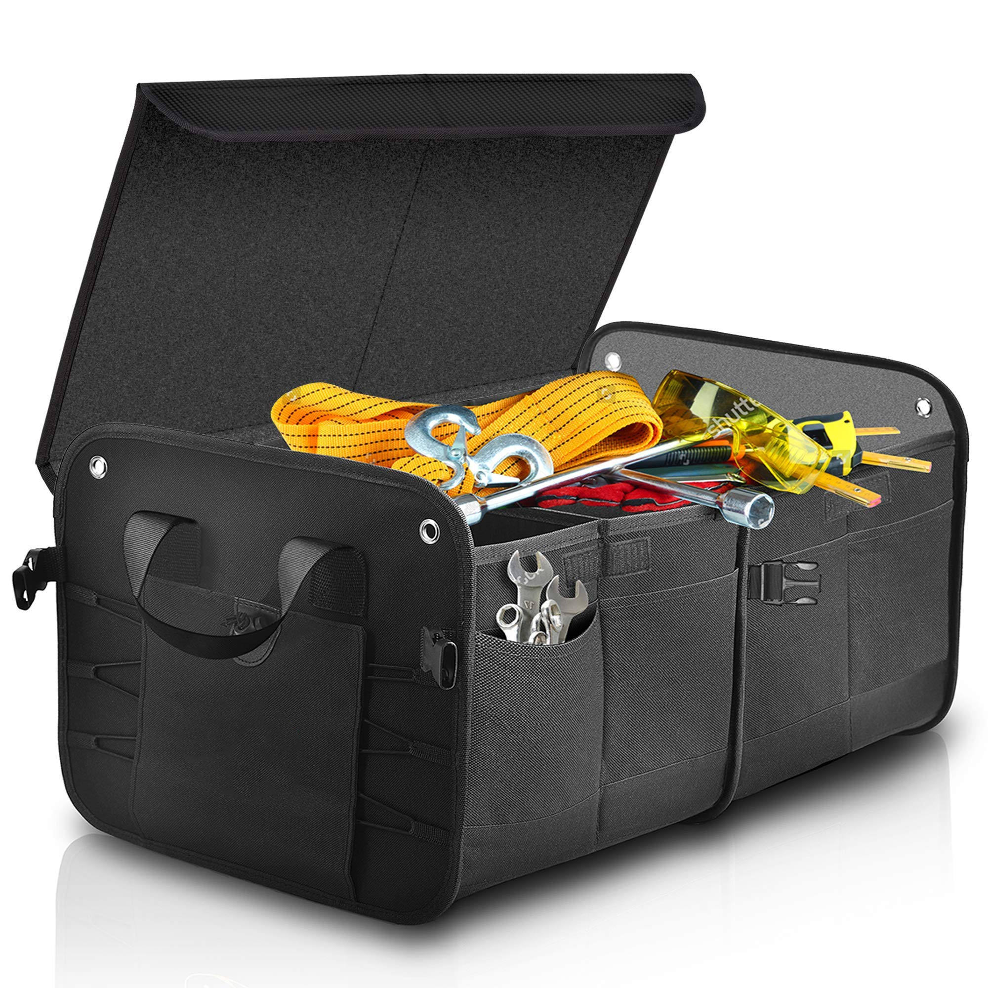 Zuhause / Produkte / Organizer-Tasche / Auto-Organizer / Zusammenklappbarer Kofferraum- und Rücksitz-Auto-Organizer, Kofferraum-Organizer mit verstellbaren Riemen