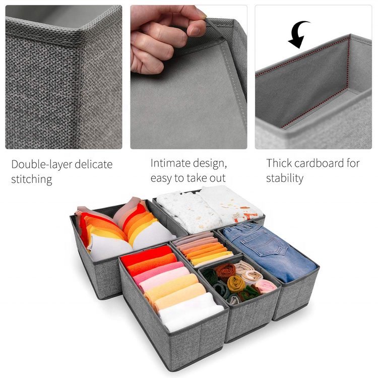 Zuhause / Produkte / Reisetasche / Packwürfel für die Reise / stabiler faltbarer Kleiderorganisator mit Trennwänden Krawatte Socken Jeans Aufbewahrungstasche Organizer große Kapazität Kleiderschubladen-Organizer