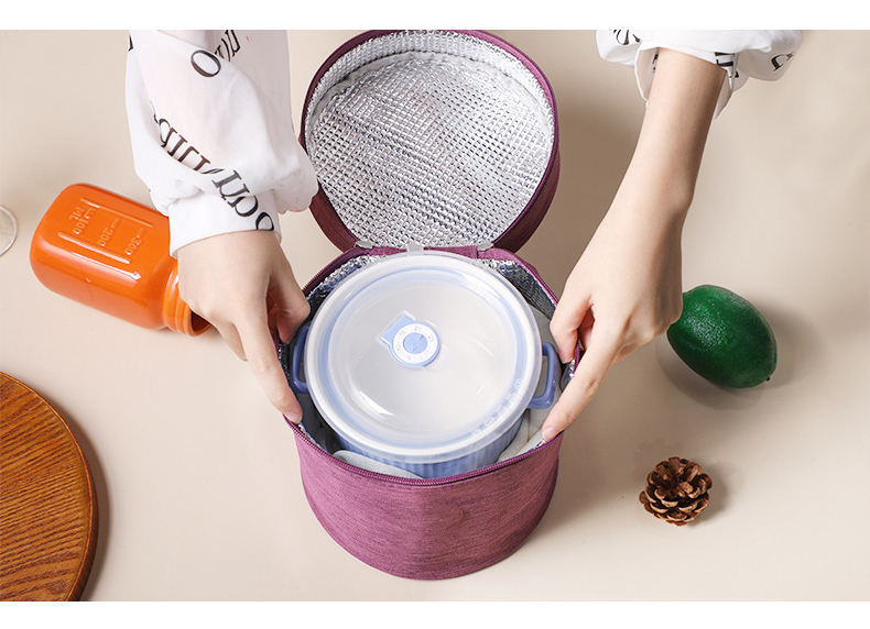 Zuhause / Produkte / Kühltasche & Lunchpaket / Lunchpaket / wellpromotion runde Lunch-Kühltasche Oxford-Stoff dicke Kühltasche isolierte modische Aluminiumfolie mit Handtrage-Kühltaschen Großhandel